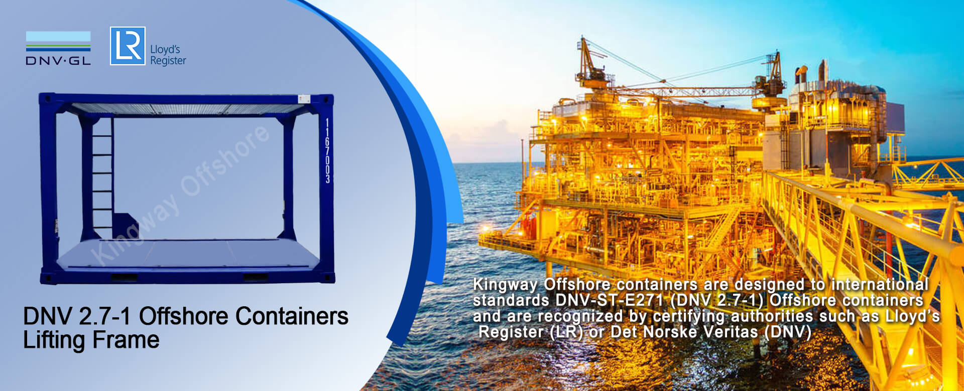 Los contenedores Kingway Offshore están diseñados según los estándares internacionales DNV-ST-E271 (DNV 2.7-1) de contenedores Offshore y están reconocidos por autoridades certificadoras como Lloyd's Register (LR) o Det Norske Veritas (DNV).